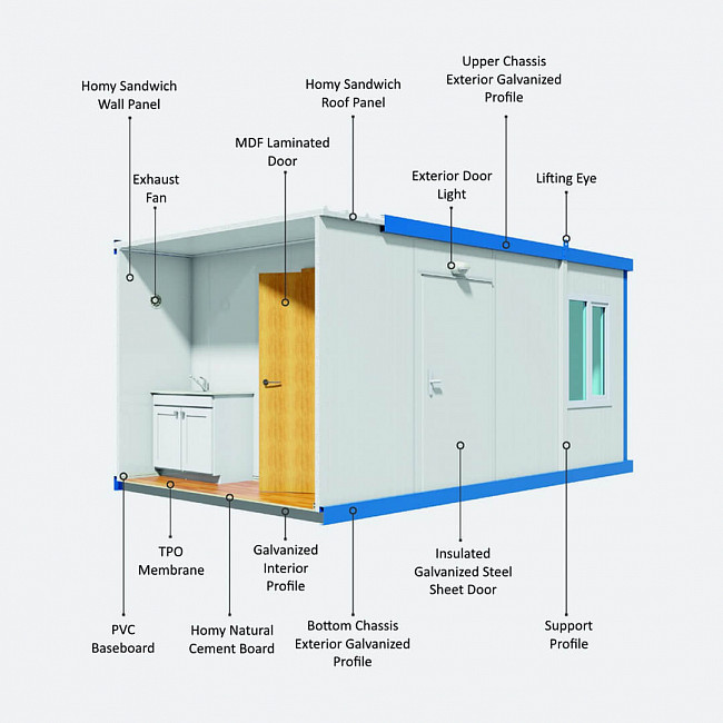 Изолированный модульный корпус Duramax - это линейка уникальных энергоэффективных зданий, в которых для крыш и стен используются оцинкованные металлические панели, изготовленные из огнестойкой полиуретановой изоляции B2, не содержащей фреонов. В то время как внутренняя обшивка выполнена из предварительно окрашенного металла (стандарт) или винила, внешняя обшивка - из предварительно окрашенной оцинкованной стали (стандартно) или пластизольной стали, что обеспечивает отличные акустические характеристики и теплоизоляцию.