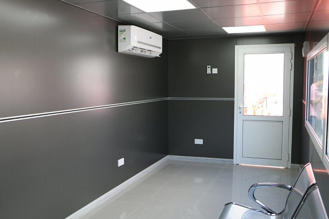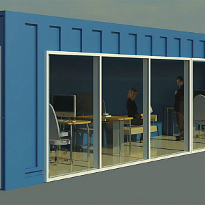 В случае организации офиса, работы по переоборудованию включают в себя не только обеспечение функциональной надежности готовой конструкции, но и разработку модели внутреннего обустройства модуля. Контейнер или комплекс из нескольких контейнерных блоков оборудуется окнами, дверьми с запорными элементами и современной системой вентиляции.