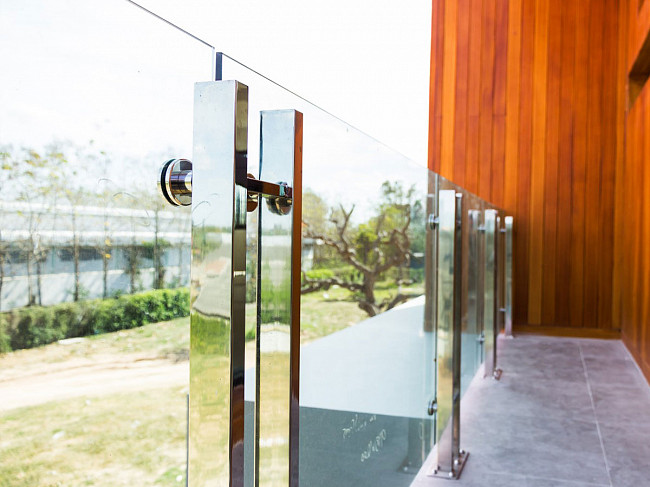 Сегодня при изготовлении ограждений успешно используется стекло, и этому есть несколько причин: визуальное увеличение пространства, безопасность, современный эффектный вид.